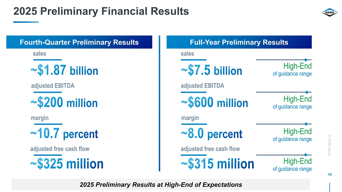 Dana Incorporated Announces Strong Preliminary 2025 Financial Results and